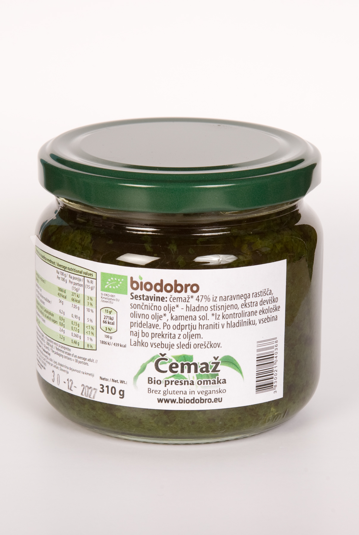 Čemaž vsebuje veliko vitalnih snovi (vitamine, minerale in eterična olja), ki čistijo in razkužujejo črevesje, znižujejo krvni pritisk, podpirajo krvožilni sistem, znižujejo nivo holesterola v krvi in pomagajo pri obnovi krvi. V biodobro čemaževi zeliščni omaki so vse blagodejne lastnosti čemaža zajete v enkratno mešanico olja, himalajske kristalne soli in svežih listov čemaža polnih naravnih arom, ki ji dajejo enkraten, nepozaben okus. Dodana mleta mandljeva jedrca dajejo čemažu prefinjen in blag okus.